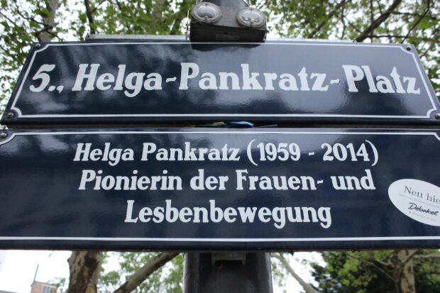 Mit Reden, Poetry Slam, Drag und Infoständen wurde an die Aktivistin, Autorin und Mitbegründerin der Lesben*gruppe der HOSI Wien, Helga Pankratz gedacht und lesbische Sichtbarkeit gefeiert.
